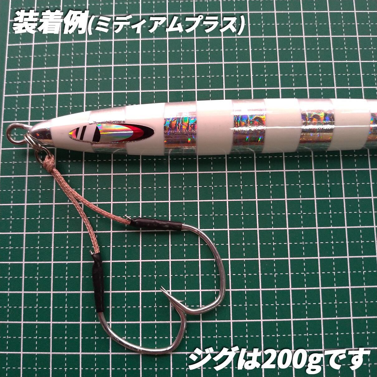 完全ハンドメイドですので微妙なラインの長さの違いなどはございます。装着例のジグは付属致しません。
